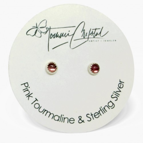 Pink Tourmaline Gemstone Sterling Silver Stud Earrings