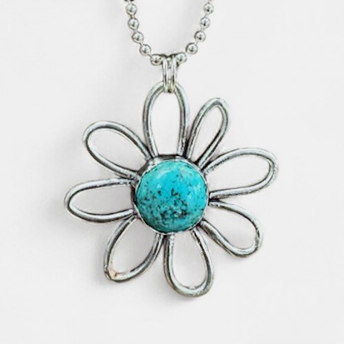 Designed from wax and resin and individually hand cast in recycled sterling silver using the process of lost wax casting and finished with a 13mm natural turquoise cabachon. Due to the unique nature of the casting method, each charm is one of a kind and there will be a slight uniqueness to each and every one. Each pendant measures approximately 1.6". Sterling silver ball chain available for an additional charge.