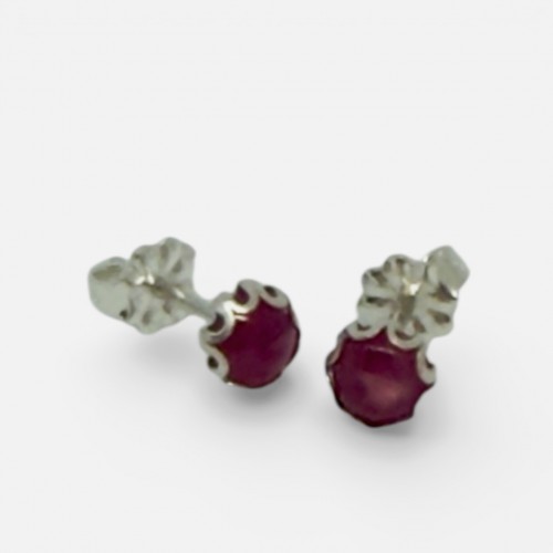 Burmese Ruby Gemstone Sterling Silver Stud Earrings